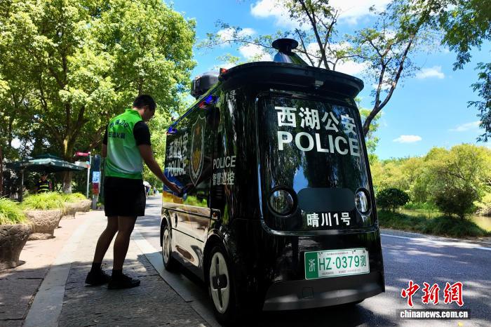 8月15日,死态义警正在掌握灵巧巡控无人车。中新社记者 钱朝菲 摄