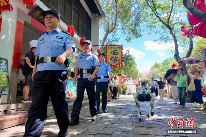 8月15日,公安无人狗取平易近警正在西溪干天中寻视。中新社记者 钱朝菲 摄